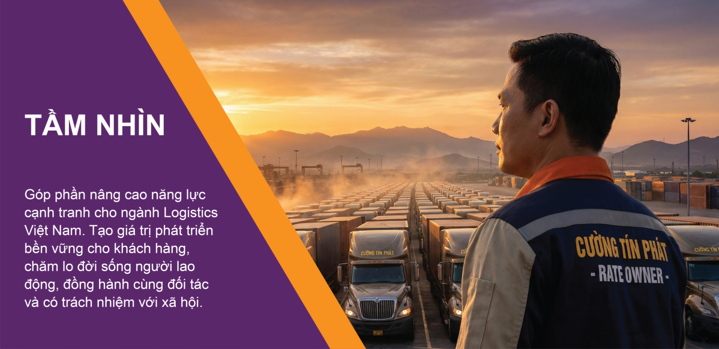 Với nhiệm vụ mang đến dịch vụ logistics an toàn, nhanh chóng và hiệu quả, chúng tôi không ngừng đổi mới để tối ưu từng hành trình vận chuyển. Sứ mệnh của chúng tôi là kết nối giá trị, nâng cao trải nghiệm khách hàng và xây dựng niềm tin.